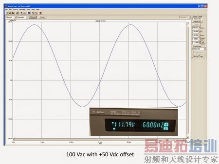 对于交流信号,我们通常是用Rms表示信号的幅度,在100V Vac信号上叠加一个50Vdc偏置后的信号实际如下图: