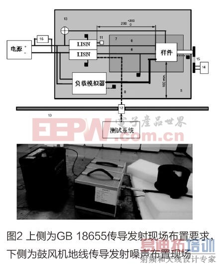 (1)按照标准进行现场布置,然后断开鼓风机供电电源负极与人工网络之间的连接,测试地线背景噪声。为了保证测试结果的可信度,背景噪声应至少比电磁干扰测试的限值低6dB。