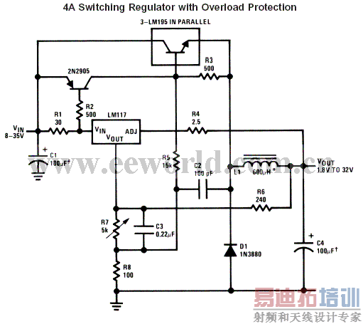 如图3所示的电路即由LM317首先驱动BGl—3DDl5,再由GBl驱动BG2、BG3——两只3DDl70管子,这时,稳压器可输出20A的电流。