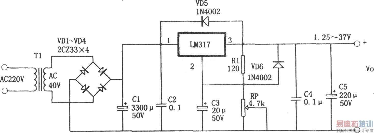 LM317构成的1.25~37V可调电源
