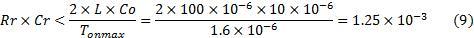输出开关纹波为 6mV(考虑一定的裕量),输出电容采用瓷片电容。式 5 是计算恒定负载条件下, 满足输出最大允许纹波的最小输出电容值。