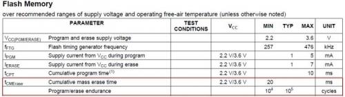 图六 MSP430G 系列单片机Flash 编程和擦除寿命