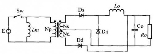 该电路是基于正反激电路设计而成的,通过恰当的设计方法和参数可以保证负载电流的连续性以及原边电感的断续,只有这样才能保证三个工作状态正常运行。