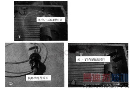 举例:为开通大理市喜洲镇分前端 1550nm 信号.需在银桥分前端安装一台 22 dB 光放大器,首先测试输入光功率为 5 . 9dB 。插好光放大器的输入尾纤,连接好输出尾纤及光功率计.开机测得光功率为 18 ~ 22 . 5dB 不稳定,在未关机的情况下,插拔尾纤和对尾纤端面进行了擦拭,光放大器输出光功率变为 7-9 . 8dB ,而 EDFA 面板显示输出为 22 . 9dBm ,经征得厂商授权同意.打开外壳发现光放大器输出模块的尾纤与适配器 ( 法兰盘 ) 连接松动.但直接测量光放大器输出模块的尾纤端,光功率为 10.2 dB ,经咨询厂商得知,估计是光放大器输出模块的尾纤端面烧坏了,更换连接尾纤后,输出光功率恢复至 22 . 5 dB ,将尾纤连接至适配器 ( 法兰盘 ) ,故障排除。此次故障第一次是由于光放大器输出模块的尾纤头与适配器 ( 法兰盘 ) 松动引起光功率降低,但在反复测试和擦拭尾纤端面过程中忘记关机,导致光放大器输出模块的尾纤头端面烧坏,引起第二个故障。