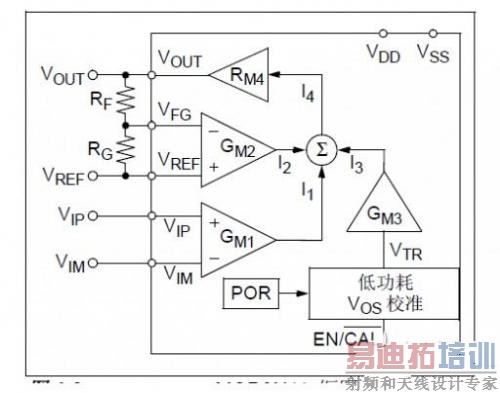 每次发生VOS校准事件时,VTR都会更新为最佳值(当时)。这些事件通过上电(通过POR进行监视)或通过将EN/CAL引脚翻转为高电平进行触发。GM3(I3)的电流输出是恒定的,并且极小(在以下讨论中将假定为0)。输入信号施加到GM1.