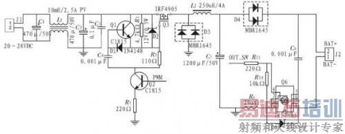 充电电路采用Buck型拓扑结构,C1、L1、C2构成π型滤波器可以滤除直流电压中的高频分量,其中L1是差模电感。