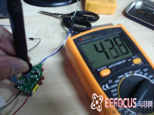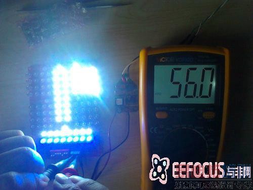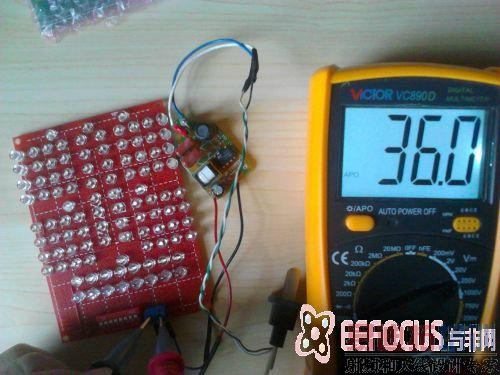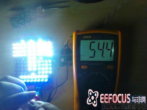 接入6串灯,板子输出电压大概53.7 V,每减少一串灯,输出电压大概增加了1V!