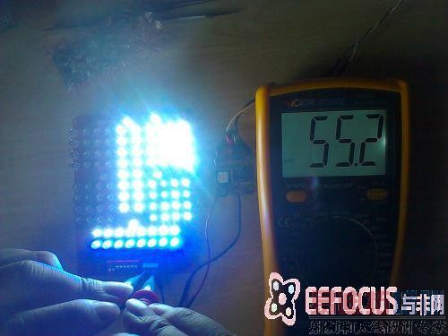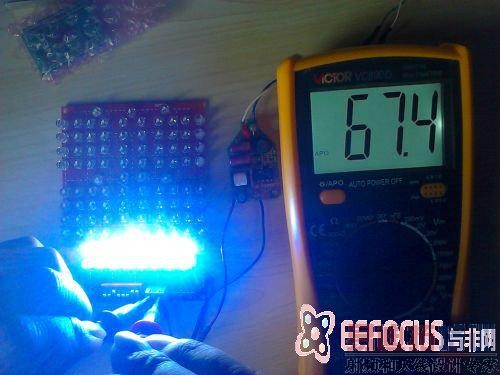 接入一串灯(17个)的时候,电压较大,达到了67.4 V,超出了挺多的……