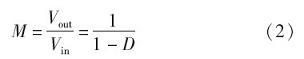 可见,在理想情况下,D越接近1,输出电压将趋于无穷大。实际上,只要输出一定的电流,就难以得到传输系数超过4~5的升压变换器。