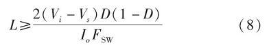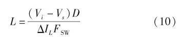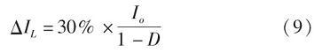 其中,Vs为为开关管导通时漏极电位。假定电路在额定输出时,电感纹波电流为平均电流的30%,即