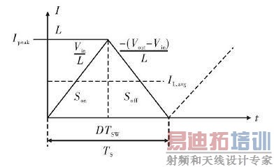 当电感电流纹波降到0时,功率开关S1立即闭合,电感电流又向上增大。如图3所示电感电流处于临界点的电流变化。此时,电感电流平均值即对称三角形的电流平均值为最大值的1/2.即