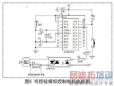采集到的同步信号经过单片机处理后控制双向可控硅MOC3021的导通。用功率电机来模拟电机的启动。按键用来使电机重新的启动过程。该电路的输出与输入的波形如图6所示。