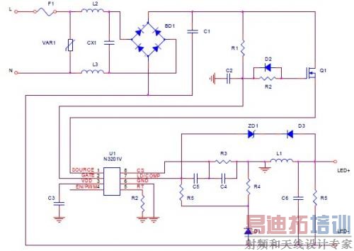 图1典型全电压非隔离高功因之BUCK架构LED驱动电路