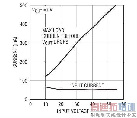 图6:输入电压与负载电流及输入电流的关系(采用图5所示的输入电流限制电路)