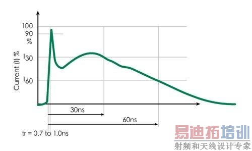 图3 IEC 61000-4-2 ESD电流波形