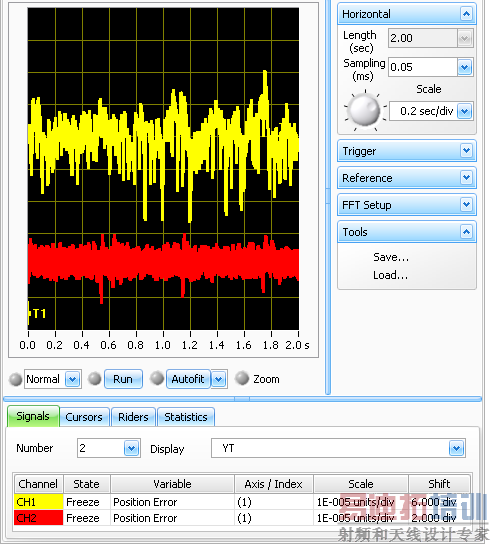 测试系统包括一个无贴心直线马达带动的直线平台,交叉滚珠轴承机械和基本分辨率为0.4mico-meter的magnascale激光模拟量SIN-COS编码器。运动控制系统包括ACS MC4U控制模块和三种不同的驱动器