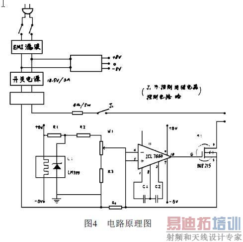 综上所述,便构成了高稳定度恒流源的基本框架。在实际电路安装时,为了消除电网电压的波动,防止调整管消耗功率太大,采取了调整管与放大器独立电源供电,电路如图4所示,恒流源供电采用EMI滤波,开关电源预稳压( 18.5V/ 3A ) , LM338三端集成稳压器调整电压为15V±0.015V,这样一来大大改善了恒流源输入电压UI变化的不利影响。