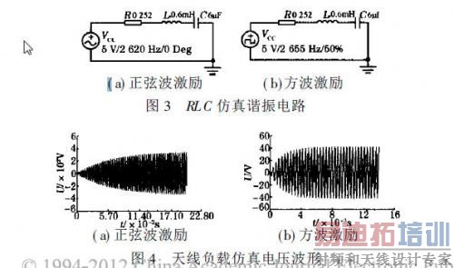 若使激励源角频率等于回路谐振角频率时,即ω= ω0= 2πf0= 1/√LC ,此时|Z| = R, |Z|为最小值,回路呈纯电阻性,ψz= 0,回路电流达到最大。回路中的谐振角频率决定于回路本身参数,与激励源无关,图3是采用两种激励源(正弦波和方波)所构成的谐振电路,用仿真测试到的线圈两端电压波形如图4所示,理论计算出回路的品质因数Q= ω.即为ω.L/ R = 50.当回路谐振频率f0一定时,通频带2Δf0.7与Q成反比,即:2Δf0= f0/Q1在正弦波激励下,图4( a)的Q大约为60,与理论计算数值基本相符,在方波激励下,图4(b)的Q大约为8.通过仿真可知:在LC串联电路中采用方波驱动时线圈负载也可获得谐振电压波形。那么合适的方波信号是从开关电源获得的,开关电源所提供的电压增大,负载上即可获得更大的电流。实际工作中采用直流电源供电,因此利用方波激励以获得谐振输出电流或电压波形。