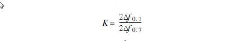 式中: 2Δf0.7为α(f)由1下降到1/√2时,两边界频率f1与f2之间的频带宽度,称为通频带,用B表示, B = f1- f2= 2Δf0.72Δf0.1为α(f)下降到0.1处频带宽度,理想值K=1,实际值均大于1.