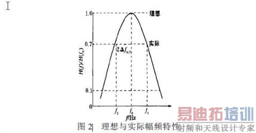 为抑制通频带外的干扰,选频电路通频带外的幅频特性H(f)应满足H(f)= 0.显然理想的幅频特性应是矩形,实际的幅频特性接近矩形,图2的纵坐标是: α(f)= H(f)/ H (f0),接近的程度与选频电路本身结构形式有关,通常用矩形系数K表示,定义为: