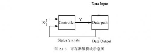 作为综合(排序和分配)的高层次结构,RTL层次将包含一个控制部分(也称控制器)和一个操作部分(也称数据通路),如图2.1. 3所示。