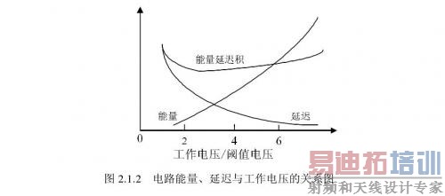 正如图2.1.2所示,从电路能量、延迟和工作电压的关系中可以看出,当VDD在2.5VTH到6VTH的范围内,延迟和能量延迟积的变化比较平缓,在VDD=3VTH时,这两者达到最低值。当工作电压继续下降到接近VTH时,延迟将急剧上升。