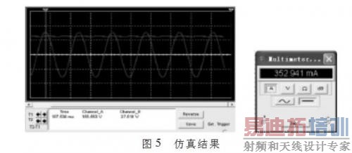 利用Multisim对电路进行仿真,得到的结果如图5所示。
