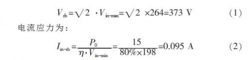 噪声滤波装置主要由电容C1/C2/C3和电感L1组成,其作用是在小于1MHz的频段内,能够减少电磁干扰(EMI)。此装置也可以链接在AC交流之后,整流装置之前,其滤波效果是一样的。安全保险装置由保险丝和ZNR1组成,保险丝主要防止有危害电路的尖峰电流产生的时候迅速切断电路以保护负载;ZNR1是浪涌吸收器,对于来自输入端的静电和浪涌进行吸收,以此来保护后面的电路。输入整流装置,是将交流电转换成直流电,输入整流桥的选择:整流桥二极管的电压应力为: