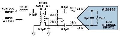 图2:采用变压器耦合AD9445的前端配置