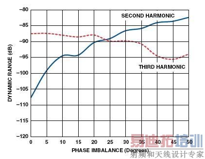 即使达到某种宽带额定值,变压器单端输入的原级和差分输出的次级之间的耦合虽然是线性的,但是也会引入幅度失衡和相位失衡。当这些失衡的信号施加到ADC(或其它差分输入器件)时,将加重转换信号(或处理信号)的偶数次失真。虽然这些失衡在低频段对高速ADC引起的附加失真通常可以忽略,但是在频率大约达到100 MHz的高频段变得尤为严重。首先让我们考察一下差分输入信号的幅度和相位失衡(特别是二次谐波失真)如何影响ADC的性能。