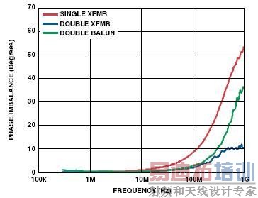 在任何情况下,为任何给定的应用选择最佳的变压器需要对变压器技术指标详细了解。其中相位失衡对于高IF输入(>100 MHz)尤为重要。即使相位失衡在产品使用说明中没有规定,但大部分变压器制造商都应根据要求提供相位失衡信息。如果需要检查或者没有提供相位失衡信息时,可以使用网络分析器来测量变压器的失衡。
