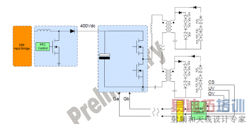 2. 低成本。对比传统的高功率LED 照明系统拓扑结构结构,新型系统拓扑结构只包括两级电路及更少的控制器,这将有效地降低成本。