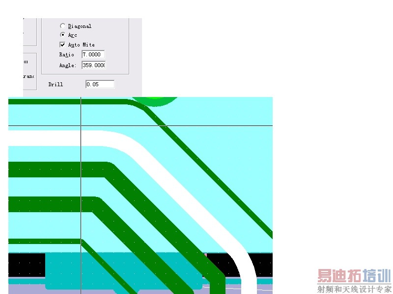 设置该参数,选择net,右键add miters, ok!