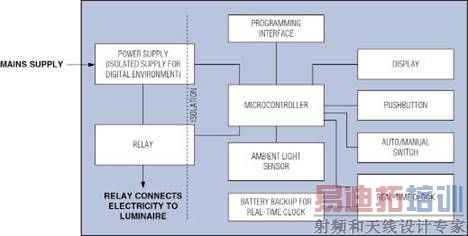 系统由市电供电,照明系统通过一个继电器接通/断开电源。系统的数字信号与市电采用电气隔离。