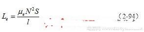(2-94)式中,Le变压器线圈的有效电感量, μe为变压器铁芯的有效导磁率,N为变压器线圈匝数,S为变压器铁芯的面积, l为磁回路的平均长度。