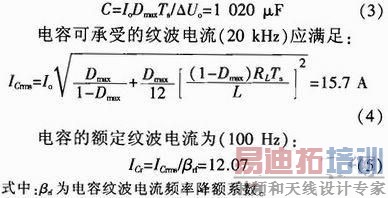 滤波电容选择主要依据纹波电压和纹波电流。纹波电流对电解电容的主要影响是发热,电容的等效串联电阻必须满足温升要求。电容容量为: