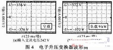 通过电网电源倍压整流产生的直流电压对该电路进行测试。图4a为输入交流电压242 V空载时输出直流电压波形,图4b为输入交流电压194.5 V重载时输出直流电压波形。测试结果表明,空载和重载情况下,正、负母线电压偏差几乎为零;最大输出功率为13 kW;温度与时间漂移产生的正负电压不平衡度不大于0.27%。