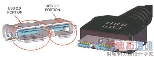 图1,在USB 3.0微型连接器中,USB 3.0线要通过USB 2.0连接器。该连接器尺寸大于USB 2.0连接器,从而引发了移动设备制造商的关切。