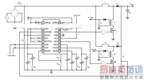 图4。典型平均电流模式交叉PFC预稳压器电路图