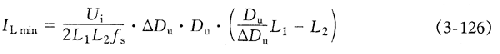 假定Cuk转换器的损耗为零,UiIi=U。,将此式与式(3-117)、式(3-124)和式(3-125)联立求解,即可得到ILmin的表达式: