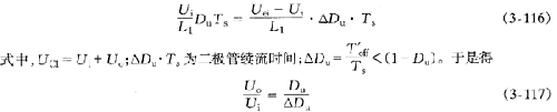 ,即ILmin>0,与电感L1中电流有负值的假定相符,则回路中有和iL2方向相同的环流;而在时,回路中环流的方向与iL1的正方向相同。利用式(3-117)和式(3-126)可以求出电流断续工作时,输出电压Uo与输入电压Ui占空比Du及ILmin之问的关系。