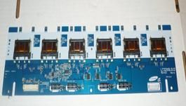 现在,因为采用了LED背光,其设计就更为简单了。因为LED是直流驱动,免去了直流转交流的麻烦,电路24V输入后直接做升压就行了,电路设计的重点在于保持各串LED之间电流的相等,现在各家IC厂商都有这方面的管理芯片,种类繁多,也就不累赘了。可以看图,后面的板子是相当精简!