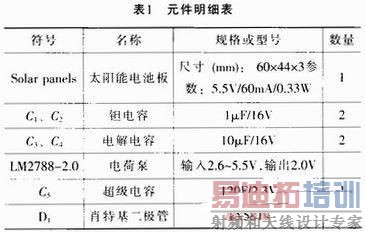 电路是由太阳能电池板、超级电容、电荷泵、肖特基二极管四大核心部件构成。