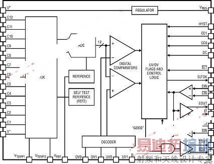 第四个非常重要的自测试功能确定是否有电池连接是开路的。就这项测试而言,对每节电池都用一个连接到电池每一端的 100uA 小吸收电流进行测量。如果连接到电池的导线开路,那么用于这节电池的 ADC 电压输入将被吸收电流拉低。对开路导线之上的下一节电池的测量,将产生过压指示并被标记出来。