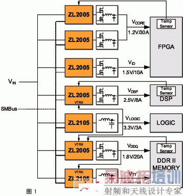 当今,面向电信及数据通信市场的先进电子系统大量依赖于高性能、精细线度数字IC(FPGA、DSP和/或ASIC)快速有效地处理对时间敏感的数字数据。对更高带宽的需求已迫使这些数字IC的制造商追求领先的工艺技术,以便在将功耗降至最低时优化性能。但是,这一趋势也产生了前几代工艺中所没有的多种电源管理问题。降低内核电压电平提高负载电流,采用亚100纳米工艺技术实现的更小芯片尺寸使这些IC中的电流密度急剧增加。此外,分离的电压层与多核架构的使用还迫使系统设计人员提供更多的独特电压层,以及在这些电压之间提供特定的排序。外部电源管理IC已可提供,它们可解决这些高端系统所产生的一个或多个问题,但如何使这些IC与电源转换块无缝协作仍是一个亟待解决的问题,这经常需要多个分立元件并进行大量软件开发。