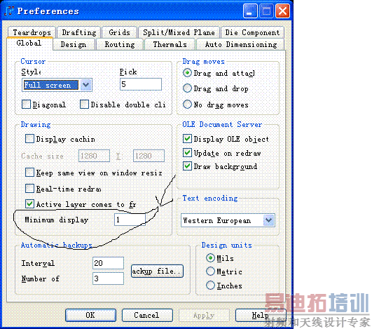 都是不学英文惹的祸。人家已经说了,那个选项是能让你把最小显示的线宽填进去的。如果你有走线比这个数值还小,那么系统就只能给你显示已条线了。