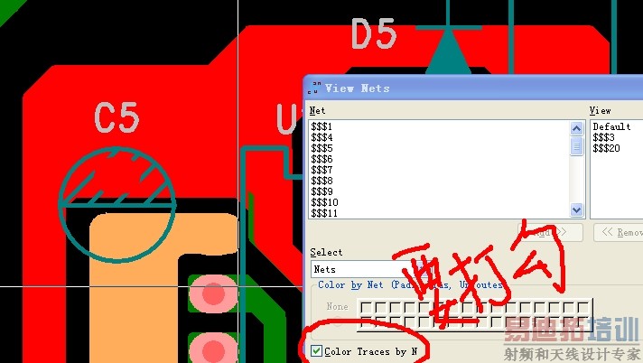 在同一层不同网络的铜皮可否设置成不同颜色?有没有这种功能阿?请高手献身