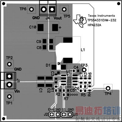 图1TPS54331 评估板布局