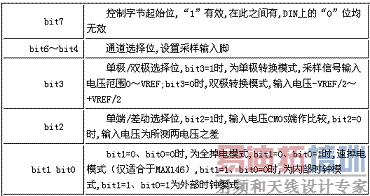 MAX146/147的控制字节由八位组成,分别为bit7~bit1,具体功能如表1所列。