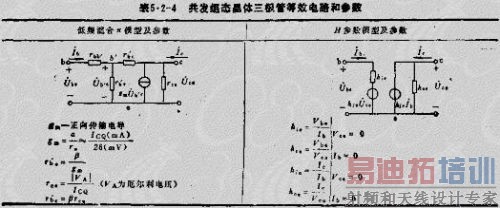 晶体管三极管小信号等效电路,根据推导方法不同分为两类:一是对晶体管物理结构及放大过程进行模拟而导出的等效电路,其中应用最广泛是混合X型等效电路;二是从四端网络观点导出的等效电路,应用最广泛的是H参数电路。表5.2-4示出共发射极组态晶体三极管的两种等效电路和参数。